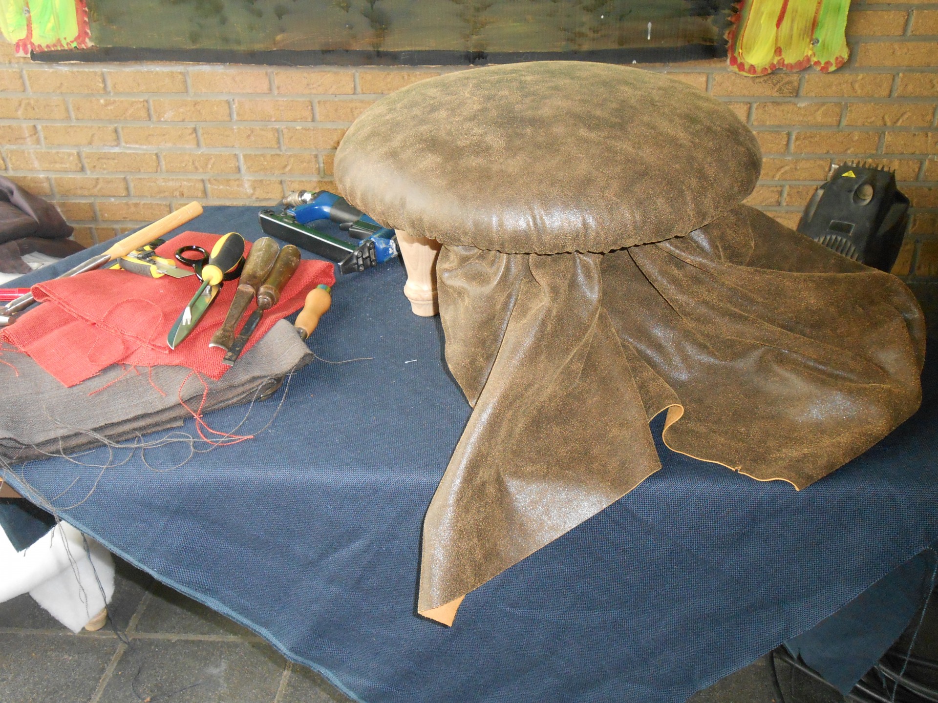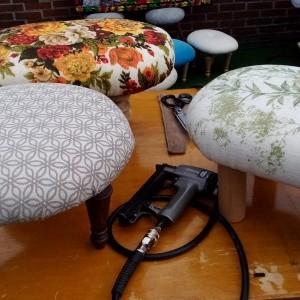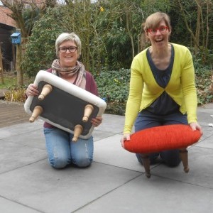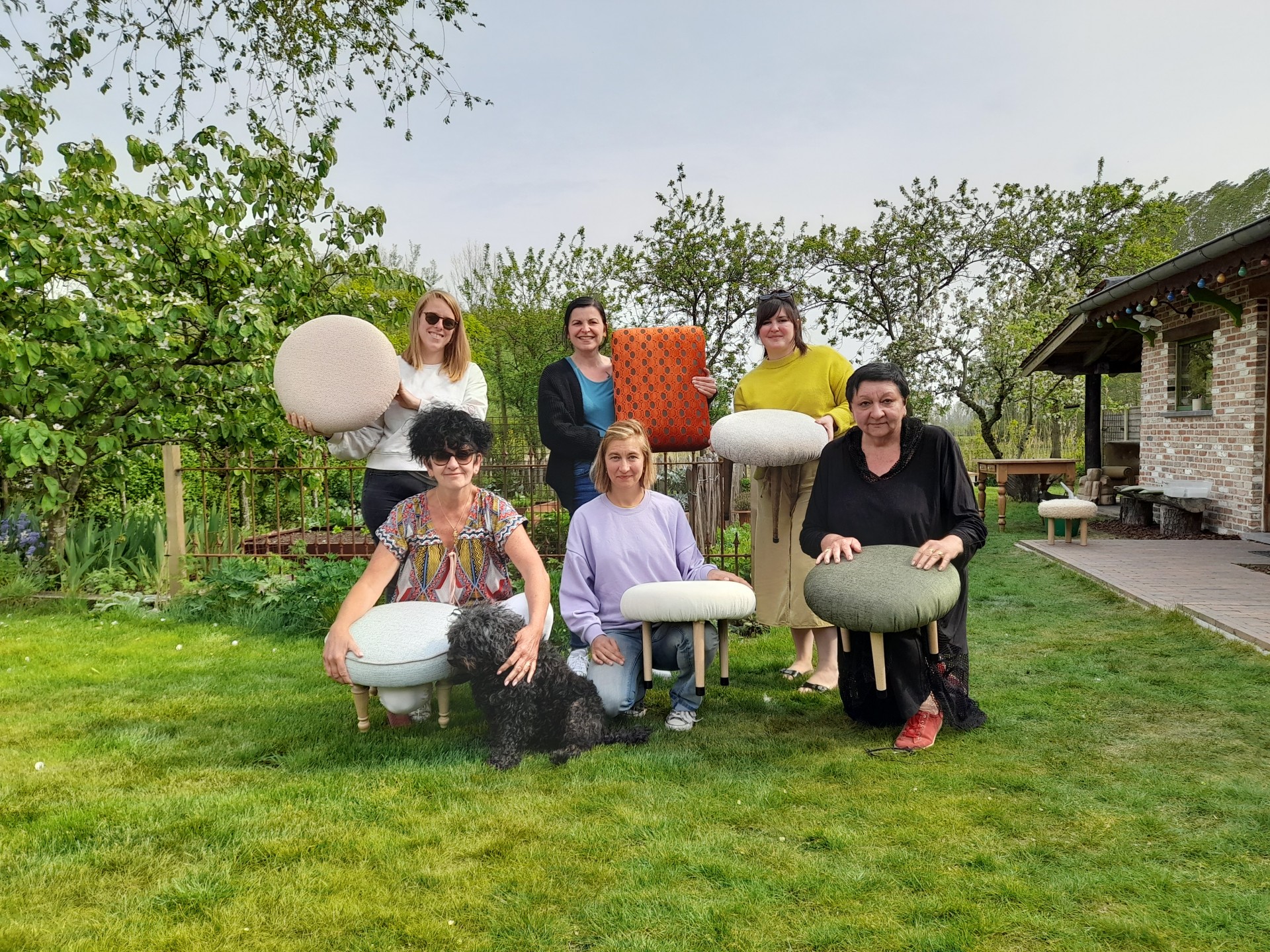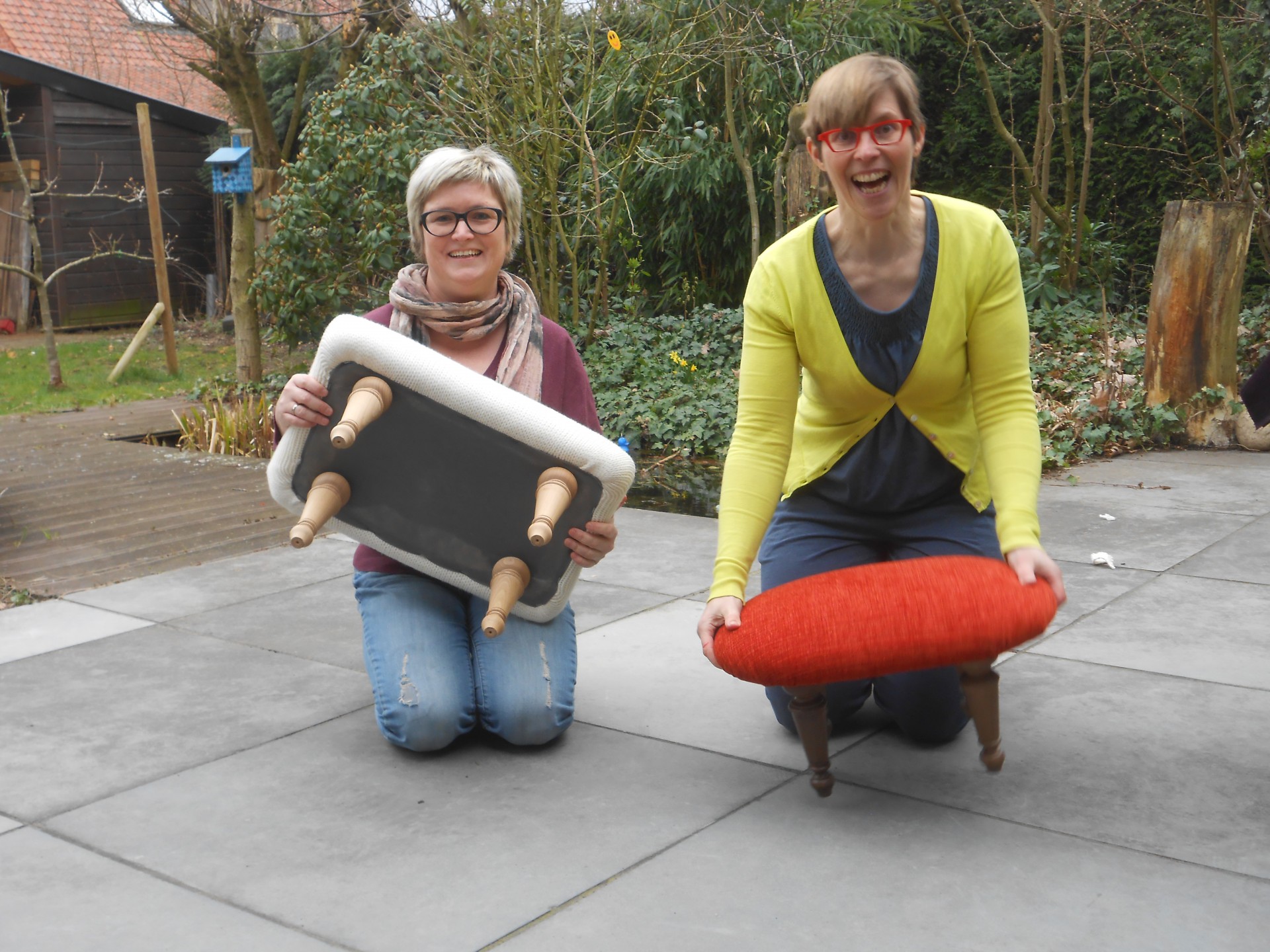 Het is een actieve stoere workshop waar we werken met hout, koevoet en stoffeerhamer, polyeters en dacron, nietenlichter en capitonneer-naald, compressors en nietmachines, siernagels en biezen… maar vooral met zeer veel creativiteit en vreugde!