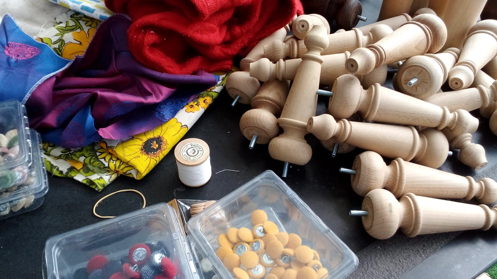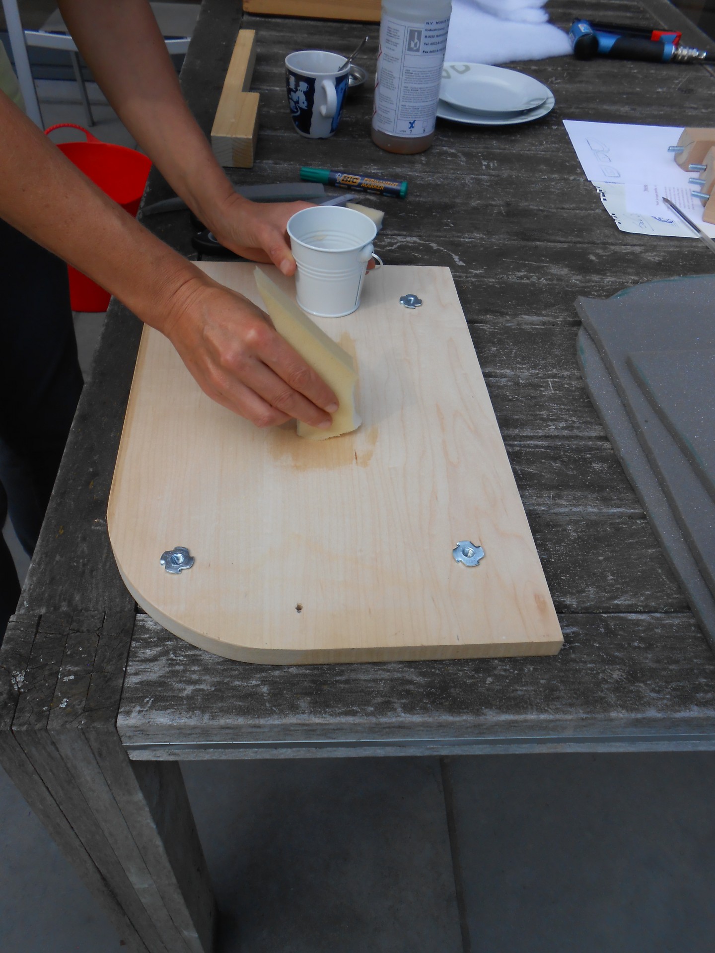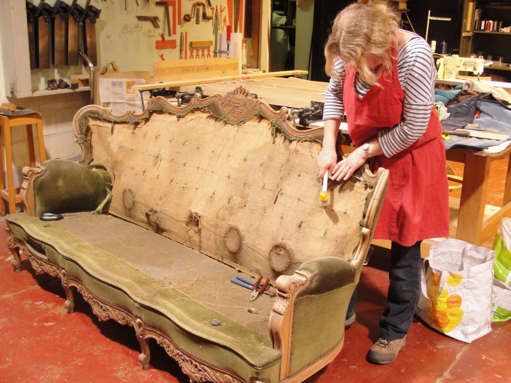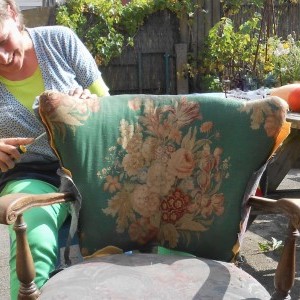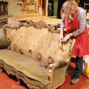 Het is een actieve stoere workshop waar we werken met hout, koevoet en stoffeerhamer, polyeters en dacron, nietenlichter en capitonneer-naald, compressors en nietmachines, siernagels en biezen… maar vooral met zeer veel creativiteit en vreugde!