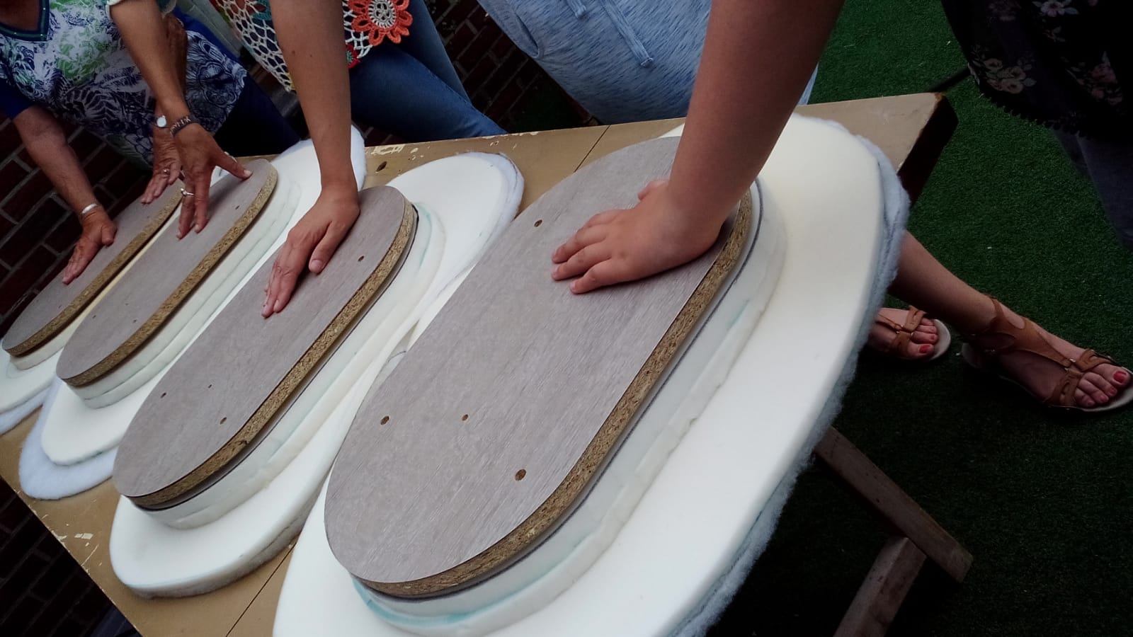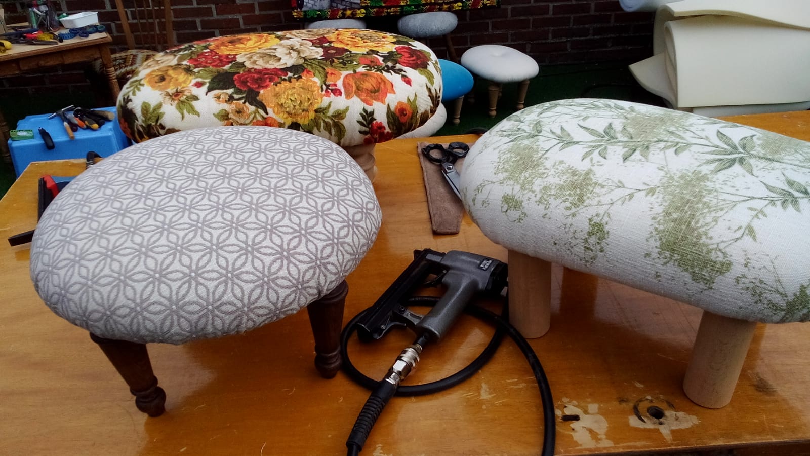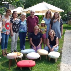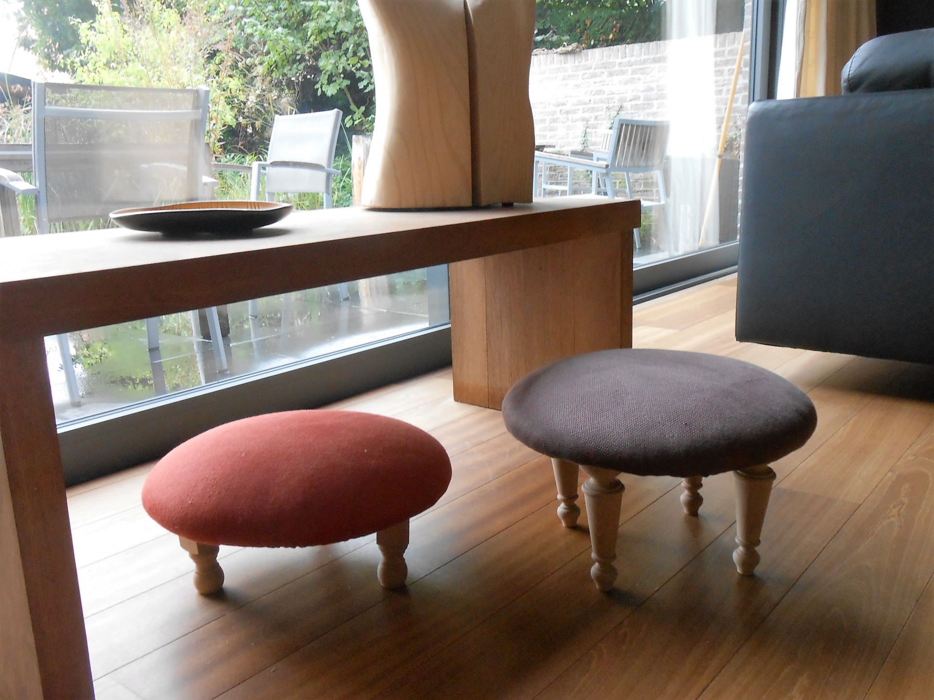 Een echte aanrader als groepsactiviteit zijn onze ‘workshops’. Hier maken de deelnemers een prachtig poefje, zit-kruk, kinderzitje… maar ook trendy badkamer- of keuken-stoeltjes werden reeds gecreëerd. Zelfs een hondenmandje! De cursisten kiezen uiteraard zelf de vorm, hoogte, enz van hun meubeltje; en hebben een zeer uitgebreide collectie van de mooiste stoffen om hun werk te stofferen. Dit maakt dat iedereen steeds zeer tevreden huiswaarts keert met een ‘perfect en volledig afgewerkt unieke zitmeubel!